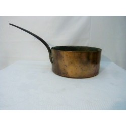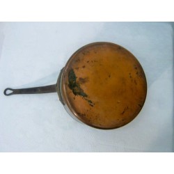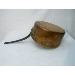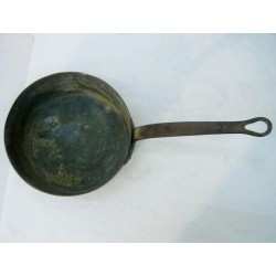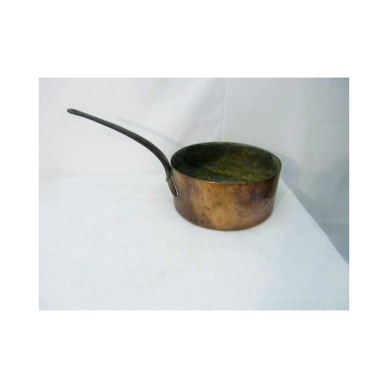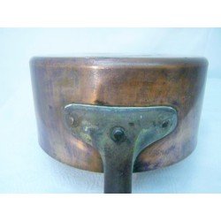 En cuivre, bien évidemment, cette casserole relève de la décoration. Légèrement oxydée à l'intérieur, il serait dangereux d'y faire cuire un plat. Quelques tâches peuvent être apparentes en noir.