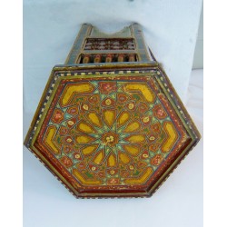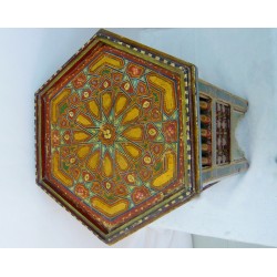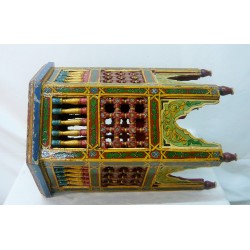 Elle est peinte par les coloris vert, rouge et jaune, et vernie.
