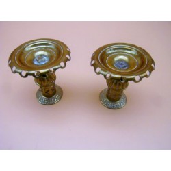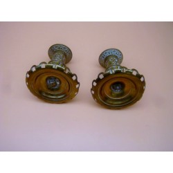 Si l'oxydation fait sur le verrou un peu de bleu canard, ils ont un poinçon. Leurs sculptures par strates, coupes et insignes royaux de manière symétrique les rangent dans le style transition du milieu du XVIIIème siècle. Petits, ils supporteront des bougies hautes et fines. Un trou, discret, au pied permet de les fixer ou bien d'avoir un autre usage.